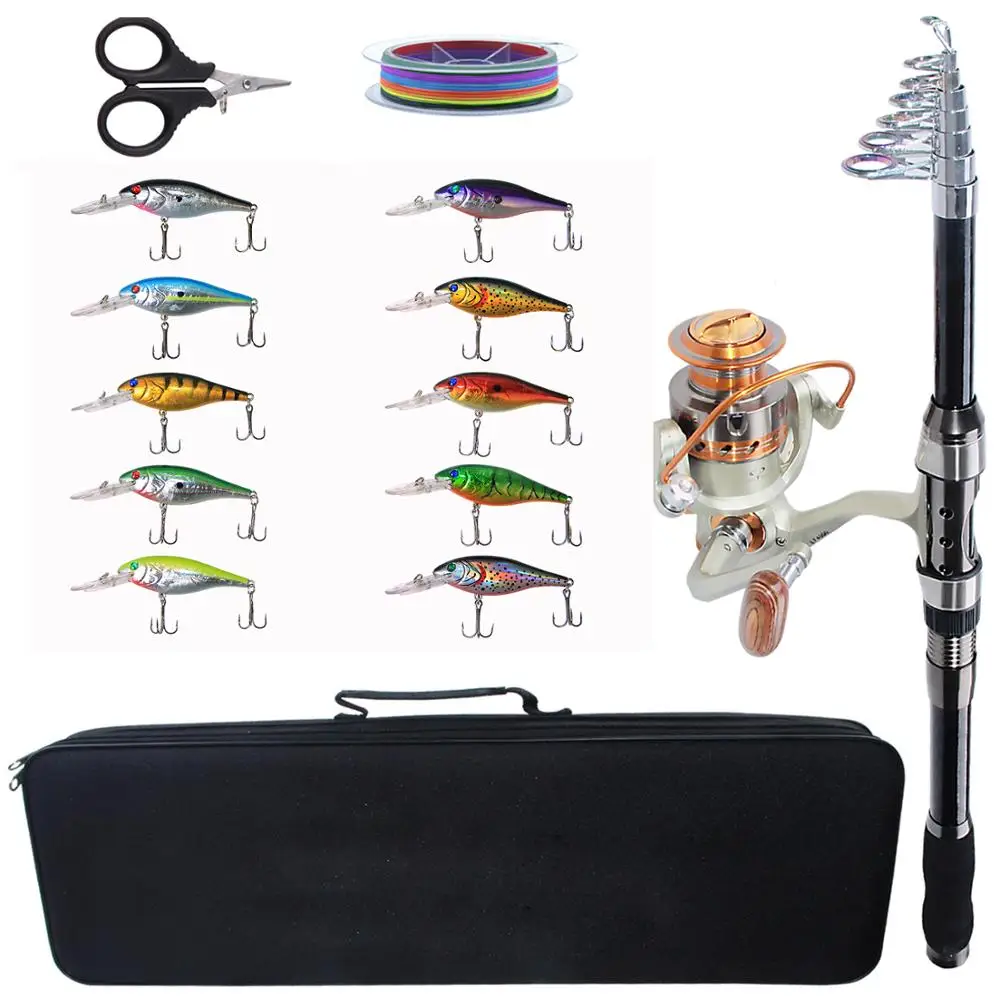 Good Chance for Spinning Fishing Rod Combo tools Kit Telescopic carbon Fishing Rod Reel Set with hard Lures for fis