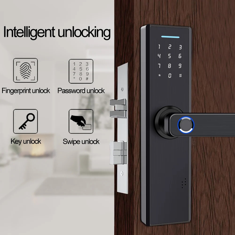 Indoor wooden door fingerprint lock household lock smart lock office fingerprint lock mechanical key lock swipe smart lock