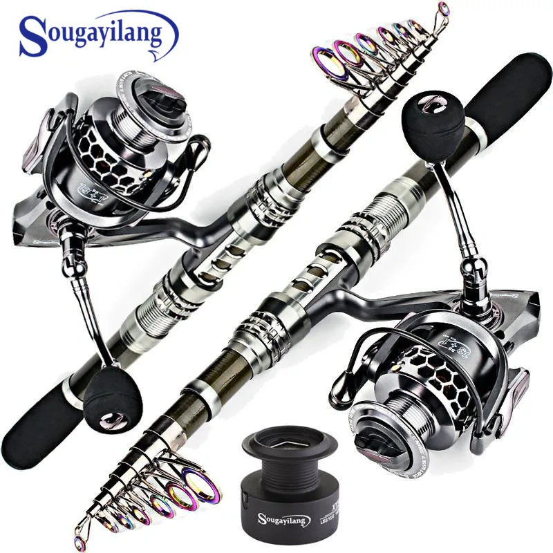 .image of Sougayilang Carbon Fiber Spinning Fishing Rod Pole and Fishing Reel Combo Telescopic Fishing Pole S