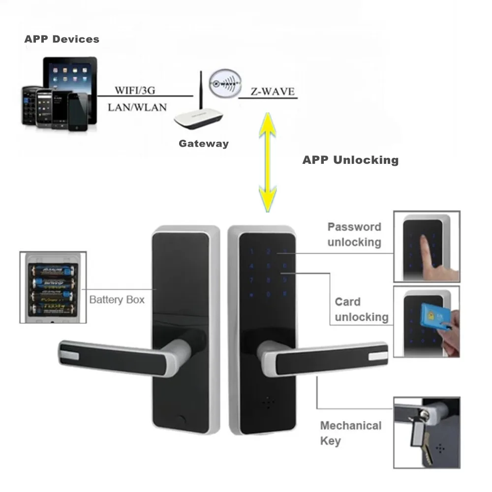 Limited Offer of z-wave APP electronic Smart Door Locksecurity digital code Card unlock for home Apartment or Hotel