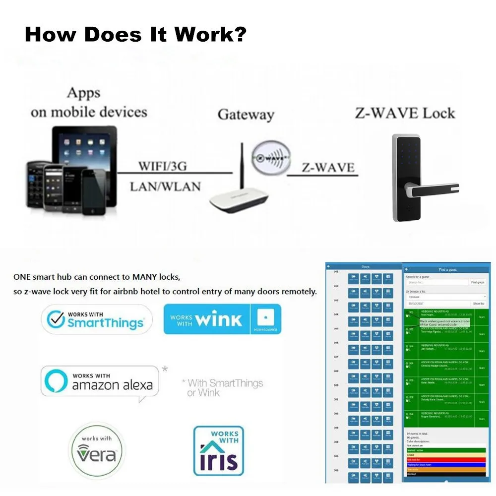 Apartment Z-wave smart Door Lock, home security electronic MF Card digital code for home office hotel airbnb