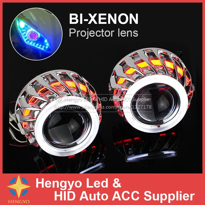 Best Price of F2 2.8inch Double Angel Eyes CCFL Bi-xenon HID Projector headlight Lens xenon bulb H1 with H4 H7 ad