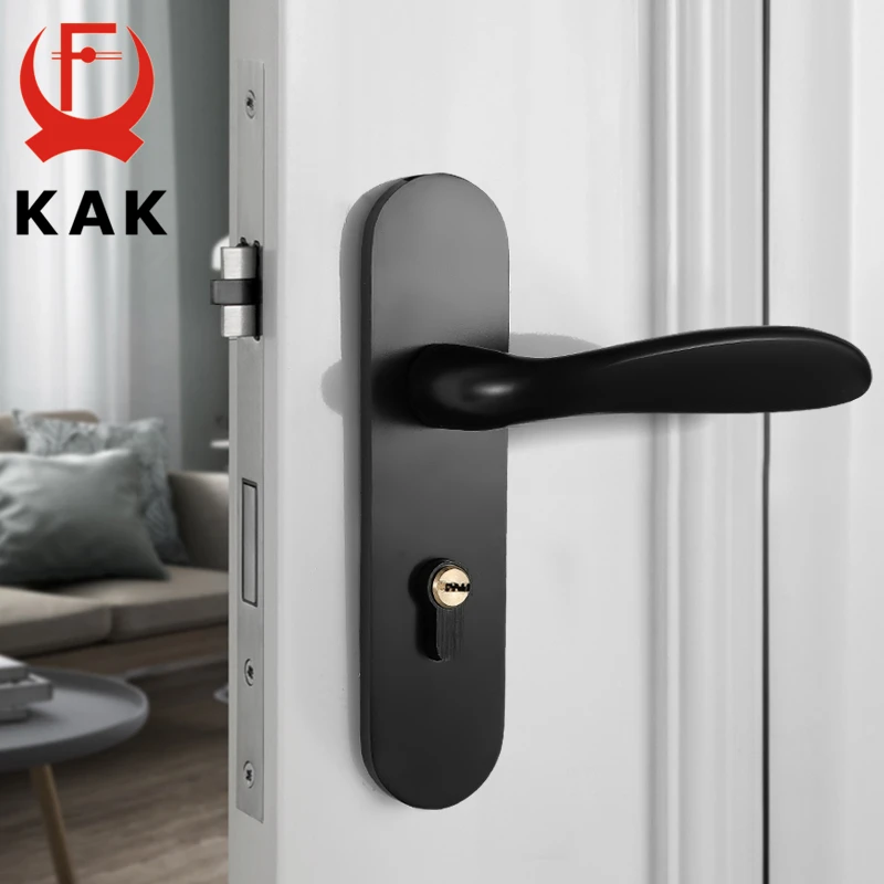 Cheap Price of KAK Mute Black Door Lock Aluminium Alloy Interior Door Lock Handle Modern Anti-theft Room Wood Door