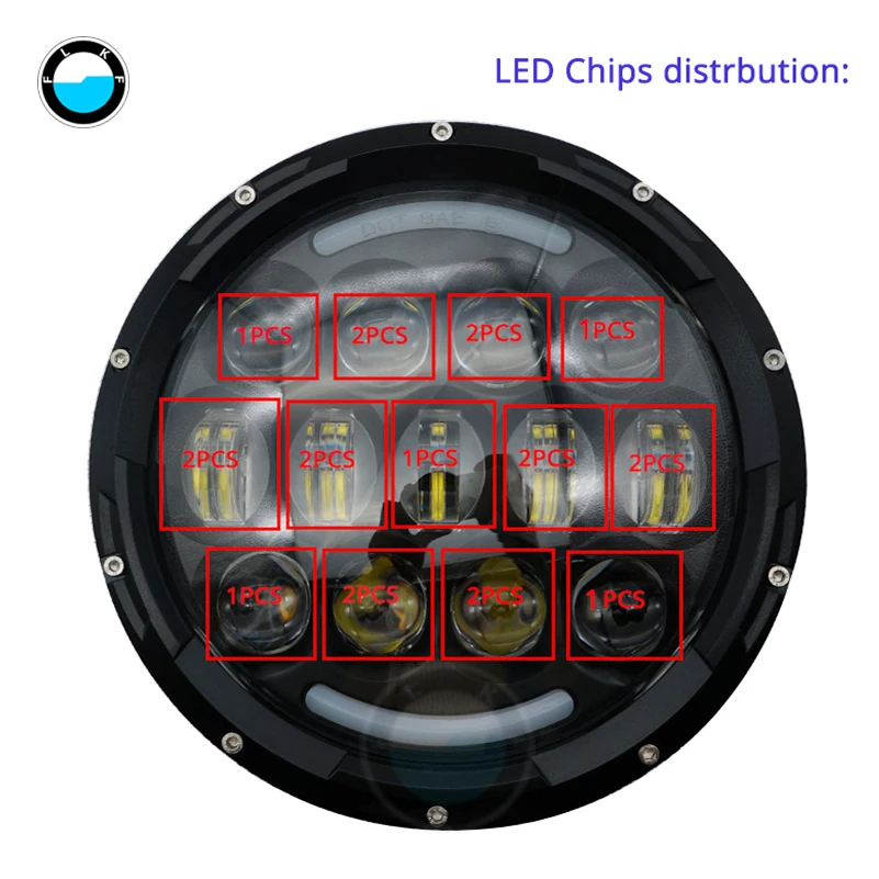 Related Product for black/chrome 7Inch projector 105W H4 motorcycle LED Headlight For motorcycle For Jeep /Wrangler /JK