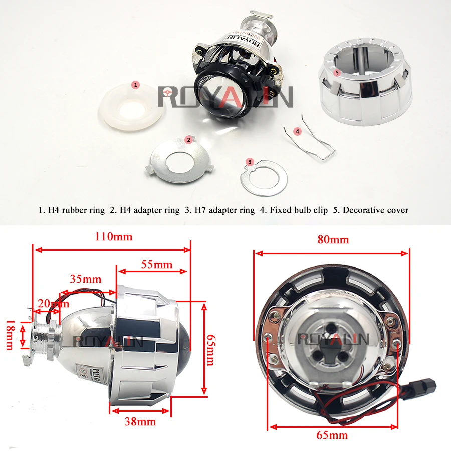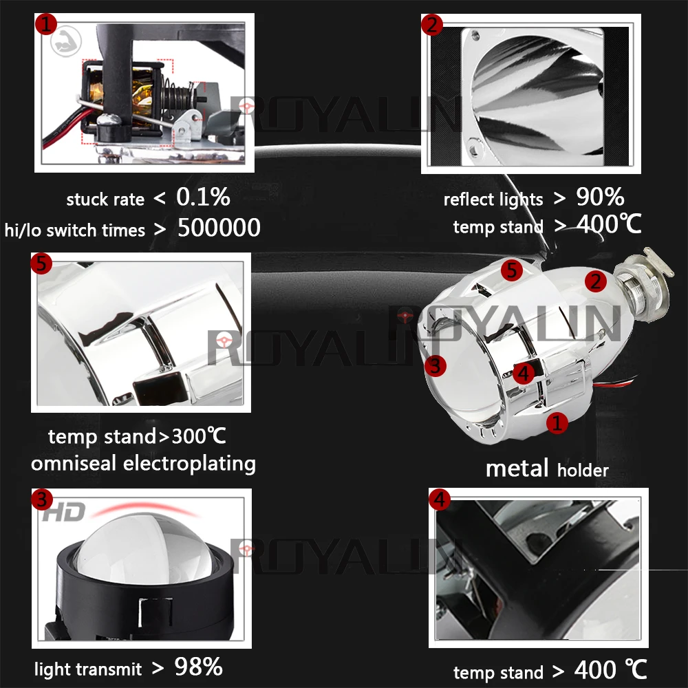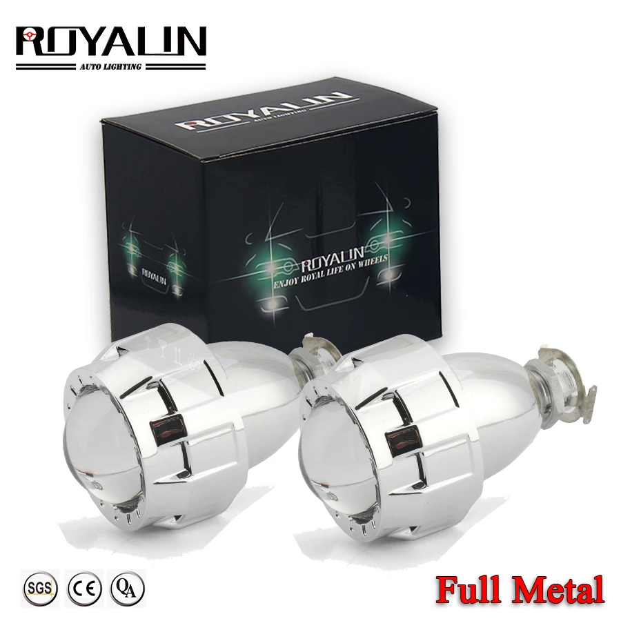 ROYALIN Bi Xenon Metal Lens Mini 2.0 Smallest Micro HID Headlight Projector Lamp w/ Shrouds H4 H7 Car Motorcycle lights retrofit