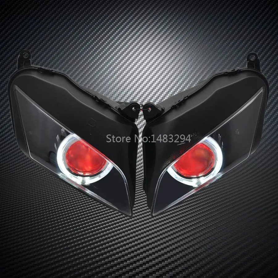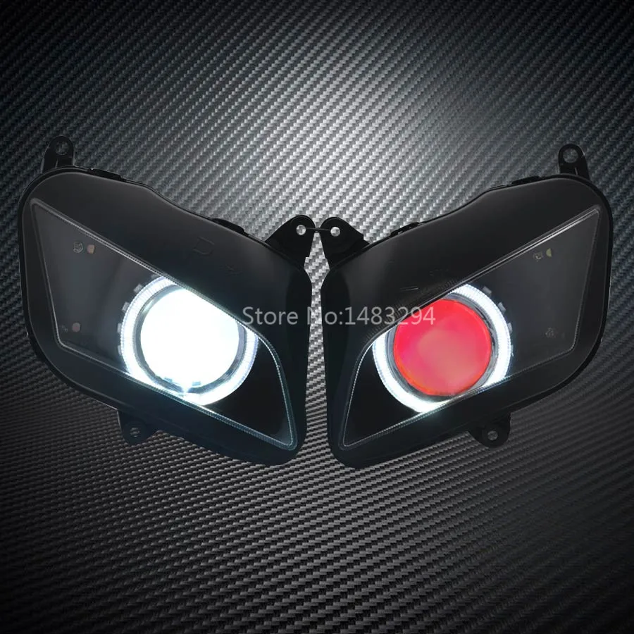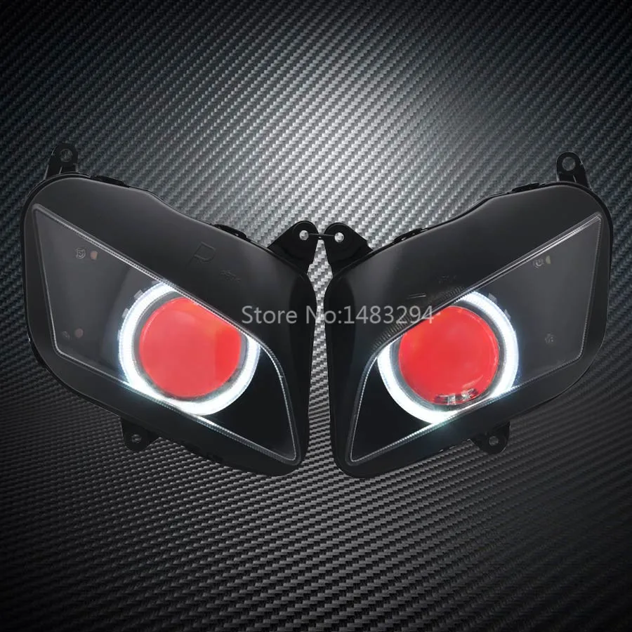 Good Offer of Custom Modified White Angel Eyes Red Demon Eyes HID Projector Conversion Headlight Assembled Fits F